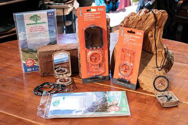 Strumenti come una bussola e una cartina del territorio non servono solo a pianificare l’itinerario prima della partenza. Sono essenziali per orientarsi durante l’escursione e per tornare a casa se non si può fare affidamento sul telefono, magari perché è scarico oppure perché ti trovi in una zona dove non hai segnale. In negozio trovi bussole con e senza specchio e cartine in scala 1:25.000 e 1:50.000.